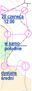 Dojazd i usytuowanie poszczególnych etapów (kliknij w mapkę, by otworzyć w większym oknie): O Kuraszkowie, w którym mamy bazę 31.07.2011 Naszą bazą będzie Klub Rolnika w Kuraszkowie. Kilka słów o miejscowości. W roku 2010 Kuraszków zajął II miejsce w kategorii "Najpiękniejsza Wieś" podczas konkursu "Piękna Wieś Dolnośląska" ogłoszonego przez Wydział Rozwoju Obszarów Wiejskich. Urzędu Marszałkowskiego Województwa Dolnośląskiego. Do Kuraszkowa zapraszają Rada Sołecka, Sołtys oraz Stowarzyszenie Przyjaciół Kuraszkowa "Lipowa Dolina". Wieś położona jest malowniczo pośród Wzgórz Trzebnickich pomiędzy Kozimi Górami od północy a Karoszkami od południa. Od Obornik Śl. oddzielą wieś Przełęcz Szarotka pomiędzy górami Żniwną Kopą a Kowalską Górą. Warto zobaczyć: dworek z XIX w. (schronisko PTSM) wraz z przyległym parkiem, dawny cmentarz, Dąb Napoleoński (przy rozwidleniu ul. Lipowej i Dębowej), wąwozy lessowe, punkt widokowy na górze Gnieździec (na wschód od wsi). Dodatkowe możliwości noclegu 21.07.2011 Dla chętnych Schronisko PTSM w Kuraszkowie ma kilka miejsc wolnych - rezerwacja we własnym zakresie tel. 071 310 25 71 - cena ok. 22 zł/osobę z własnym śpiworem, ok 25 zł/osobę z pościelą (pokoje wieloosobowe, piętrowe łóżka, dostęp do kuchni). Regulamin 21.07.2011 W dziale "Regulamin" aktualny regulamin imprezy. Ścigać się będziemy na 2 nowych mapach w okolicach Wilczyna Leśnego oraz na jednej mapie z ubiegłego roku w Obornikach Śl. Niestety Schronisko PTSM w Kuraszkowie jest zajęte w naszym terminie, w związku z tym oferujemy na nocleg podłogę w Klubie Rolnika w Kuraszkowie. ogłoszenie 19.07.2011 W ciągu kilku dni ukaże się regulamin. Przepraszamy za opóźnienie. Mistrzostwa DLŚ w RJnO 2011 - zmiana terminu 24.05.2011 Niestety z powodu zmiany terminu rozgrywania zawodów ogólnopolskich Grand Prix Polski w RJnO w Dusznikach Zdroju na 15-17.07.2011 postanowiliśmy przenieść Mistrzostwa Dolnego Śląska w Rowerowej Jeździe na Orientacje na termin 6-7. sierpnia 2011 r. Miejsce pozostaje bez zmian - okolice Obornik Śląskich. Mistrzostwa DLŚ w RJnO 2011 9.11.2010 Zapraszamy na kolejne Mistrzostwa Dolnego Śląska w Rowerowej Jeździe na Orientacje, które odbędą się 16-17. lipca 2011 r. również w okolicach Obornik Śląskich. OMW w RJnO 26.07.2010 Zapraszamy na trzeci etap Otwartych Mistrzostw Wrocławia w Rowerowej Jeździe na Orientację 19. września 2010. Wariacja Kornela :-) 25.07.2010 No proszę, jaką wycinankę można zrobić z kliszy filmowej (by Kornel): Wyniki i zdjęcia 19.07.2010 Wyniki imprezy. Zdjęcia (prosimy przysyłać linki do zdjęć i relacji do Róży: ozam@gazeta.pl): Zapraszamy też na nasze forum. Podsumowanie 19.07.2010 Za nami Mistrzostwa Dolnego Ślaska w Rowerowej Jeździe na Orientację. Impreza odbyła się pod patronatem Burmistrza Obornik Śl., p. Pawła Misiorka. Serdecznie dziękujemy za Wasze przybycie i zapraszamy za rok! Pierwszy etap na dystansie średnim, którego budowniczym był Piotrek Spiliszewski, odbył się w lesie obok Obornik Śląskich. Pogoda była upalna, 35 stopni. Wystartowało 32 zawodników, w tym 3 osoby z UKS Arkady Raszków zmierzyły się z trasami pieszo. Teren był pagórkowaty, drogi momentami mocno zapiaszczone. Drugi etap, sprint, budował Marcin Drewniak. W czasie biegu przechodził nad nami front atmosferyczny, była słaba burza z deszczem, ale nikt się nie poddał. Wystartowało 26 osób, w tym 3 pieszo. Teren sprintu był bardziej płaski, za to bardzo piaszczysty. Wieczorem ognisko było bardzo udane i nie przeszkadzał nam drobny deszczyk. Wznieśliśmy toasty za Anię Kamińską, polską Mistrzynię Świata w RJnO na sprincie oraz za Hanię Wiśniewską, polską Wicemistrzynię Świata w BnO w sprincie. Świętowaliśmy także urodziny klubowiczki Róży. Był tort, ciasto, kiełbaski, rzucanie solenizantką ;-) oraz puszczanie lampionów do nieba... W nocy oglądaliśmy zdjęcia i filmiki z pierwszego dnia rywalizacji. Kto nie był niech żałuje i następnym razem nie odpuści sobie imprezy Artemisu! Trzeci etap, dystans klasyczny, budował Michał Włodarczyk. Padający deszcz nie przeszkodził 22 zawodnikom ukończyć biegu. Tym razem trasy były z dużym przewyższeniem, a drogi rozmokły i były bardziej gliniaste. Parametry tras i program 17.07.2010 17.07. (sobota), godz. 11:00 – etap 1 - dystans średni, start obok pola biwakowego przy drodze nr 340, ok. 2,8 km od Obornik Śląskich w kierunku Wołowa. BT – Piotr Spiliszewski BT-II. Mapa: Oborniki MTBO skala 1:10 000, warstwice co 2,5 m. Aktualność 2003, drożnia - lato 2010. Autorzy mapy: Michał Włodarczyk, Sebastian Piller. 17.07. (sobota), godz. 13:30-14:30 obiad w Restauracji „Bajka”, 150 m od Dworca PKP Oborniki Śl. 17.07. (sobota), godz. 17:00 – etap 2 - dystans sprinterski, start przy miejscowości Świerzów, ok. 1,2 km od Bazy Zawodów w Kuraszkowie. BT – Marcin Drewniak BT-III. Mapa: Świerzów MTBO skala 1:10 000, warstwice co 5 m. Aktualność lato 2010. Autor mapy: Michał Włodarczyk. 17.07. (sobota) - ognisko w Bazie Zawodów w Kuraszkowie 18.07. (niedziela), godz. 10:30 – etap 3 - dystans klasyczny, start ok. 300 m od Bazy Zawodów przy Schronisku PTSM w Kuraszkowie. BT – Michał Włodarczyk BT-I. Mapa: Kozie Czuby MTBO skala 1:15 000, warstwice co 5 m. Aktualność lato 2010. Autor mapy: Michał Włodarczyk 18.07. (niedziela), godz. 13:30 – zakończenie zawodów, wręczenie medali i losowanie nagród. Parametry tras - długości tras liczone są po najlepszym wariancie jazdy (kody punktów są umieszczone są na mapie) Etap 1 – średni 17.07.2010. godz. 11:00 Etap 2 – sprint 17.07.2010. godz. 17:00 Etap 3 – klasyk 18.07.2010. godz. 10:30 Obiad i basen 16.07.2010 W sobotę proponujemy obiad w Restauracji "Bajka" koło Dworca PKP w Obornikach Śl. w cenie 18 zł. W skład zestawu wchodzi zupa, ziemniaki, kotlet schab